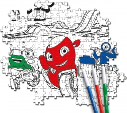 Nyd dobbelt så meget sjov med det dobbeltsidede Ricky Zoom-puslespil med 104 brikker fra Clementoni. På den ene side lægger du et klassisk motiv, og på den anden side kan du farvelægge dit eget billede med de medfølgende tuscher. At lægge puslespil udvikler finmotorik og iagttagelsesevne.