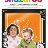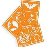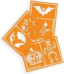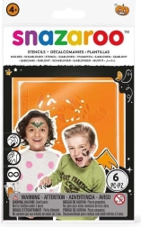 Sæt med seks SNAZAROO-skabeloner til nem og hurtig ansigts- og kropsmaling. Tematiske motiver til Halloween, selvklæbende bagside for stabilitet, fleksibelt materiale der tilpasser sig kurverne og genanvendelig takket være den vaskbare udførelse.