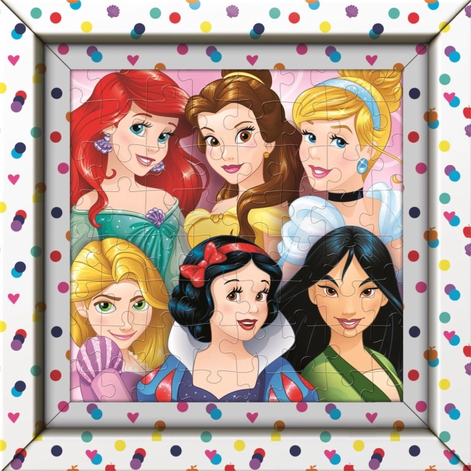 Et puslespil, som du nemt kan indramme lige efter samling! Du behøver ikke købe en ekstra ramme til puslespillet, blot et par bevægelser, og en stilfuld ramme, som bliver et designelement i ethvert rum, er klar. Puslespil fra specialkollektionen Frame Me Up med motiv af de populære Disney-prinsesser. Pakken indeholder også en papramme. At lægge puslespil hjælper børn med at udvikle finmotorik og iagttagelsesevne. Materialernes kvalitet og en eksklusiv trykteknik sikrer vedvarende smukke, levende og strålende farver. Anbefales til børn fra 6 år. Mål på det samlede puslespil ca. 27 x 27 cm