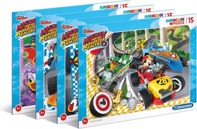 Sjovt ramme-puslespil til de mindste med motiv fra serien MICKEY OG RACERKØRERNE. Indeholder 15 solide brikker, som lægges direkte på underlag med ramme. Kollektionen SuperColor byder på klare og strålende farver og styrker børns finmotorik og iagttagelsesevne.