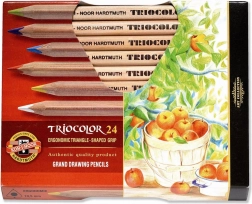KOH-I-NOOR Triocolor Natur trekantede farveblyanter er designet til et naturligt og stabilt greb. Den naturlige overflade minimerer sved og glid, hvilket gør dem ideelle både til de første streger og til længere tegnesessioner. Den kraftige kerne sikrer en intens streg og høj brudstyrke.