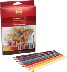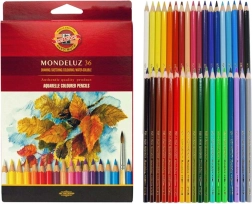 Sættet med akvarelblyanter KOH-I-NOOR MONDELUZ i antal 36 stk. er ideelt til detaljeret tegning og maleri med vand. Pigmenterne er kendetegnet ved fremragende lysegthed og farverenhed, så dine værker forbliver klare og markante i lang tid. Ved kontakt med pensel og vand flyder stregen smukt ud og gør det muligt at opnå effekter, der er typiske for akvarel.