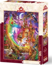 Nyd kvalitetslægning med puslespillet “Regnbueslot” med 500 brikker og en færdig størrelse på ca. 34 × 48 cm. Mærket ART PUZZLE tilbyder også en service for fremsendelse af manglende brik ved opfyldelse af betingelserne.