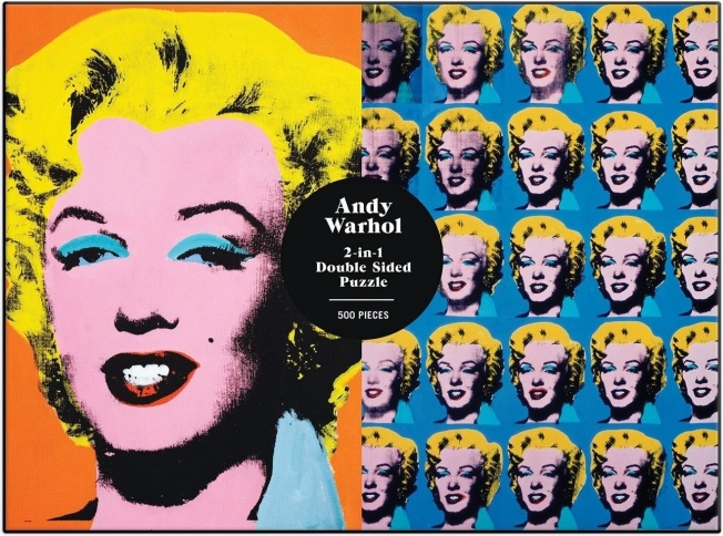 Stilfuldt dobbeltsidet puslespil med det ikoniske motiv Marilyn af ANDY WARHOL byder på to forskellige sider med blank og mat finish for lettere samling. Ideelt til designelskere og Pop Art, der søger kvalitetsunderholdning med et færdigt mål på ca. 61 × 46 cm.