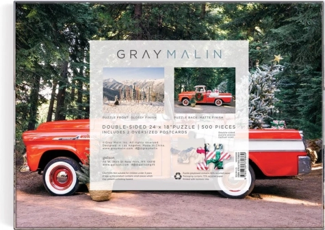 Det nostalgiske vintermotiv med retro lastbil, juletræ og gaver vil glæde både juleelskere og hele familien.