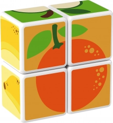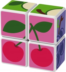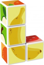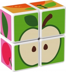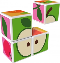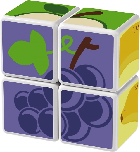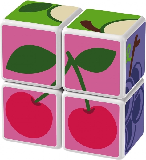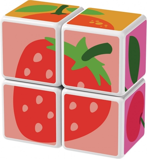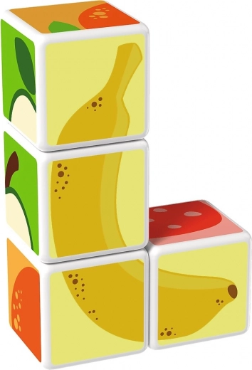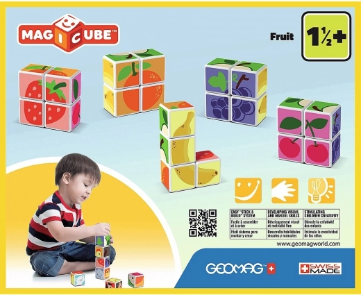 Sættet Geomag Magicube Frugt bringer farverige magnetiske klodser med illustrationer af æble, jordbær, druer, kirsebær, banan og andre frugter. Børn kan samle frugtbilleder samt simple 3D-konstruktioner som en skorsten eller en lille indhegning. Magneterne inde i klodserne sikrer nem sammenkobling og stabilitet, så legen er intuitiv, sjov og uden frustration.