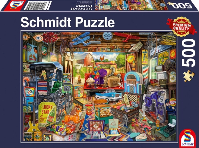 Puslespil “Loppemarked i garagen” med 500 brikker. Detaljeret udførelse og materialer i høj kvalitet for masser af underholdning.