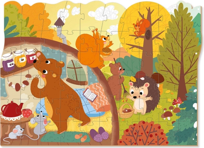 Oplev efterårets magi med DODO Årstider: høsttid. Dette farverige puslespil med 60 brikker udvikler finmotorik, logisk tænkning og tålmodighed. Med konturkanten bliver det lettere for børn at lægge, og det færdige motiv i størrelsen 32 × 23 cm fremstår flot.