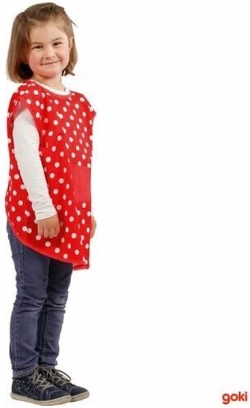 Dette stilfulde forklæde er en fantastisk hjælper for alle små kokke, kunstnere og kreative sjæle. Takket være det søde prikkede mønster vil børn hurtigt holde af det, mens forældre vil sætte pris på den effektive beskyttelse af tøjet mod snavs. Nem påklædning over armene og bindelukning på ryggen sikrer komfortabel brug.