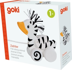 Denne træ-ande til at trække med zebramønster er det ideelle legetøj til små opdagelsesrejsende. Takket være den robuste konstruktion i massivt træ og de glatte kanter er den sikker og behagelig at røre ved. Når man trækker den, bliver anden en sjov motivator til at gå og hjælper med at udvikle grov motorik og sans for balance.