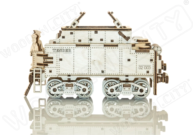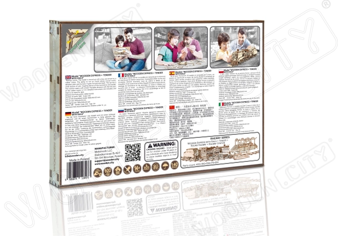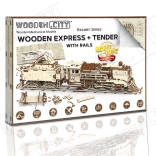 Byg et realistisk træ-eksprestog med tender og skinner, og tag tilbage til damplokomotivernes guldalder. Modellen er udstyret med en speciel startnøgle, åbne-lukkedøre til fyrkassen, drivhjul og kobling mellem lokomotiv og tender. Når den er samlet, kører lokomotivet frem, tilbage og i cirkler, så du får glæde af både byggeri og kørsel.