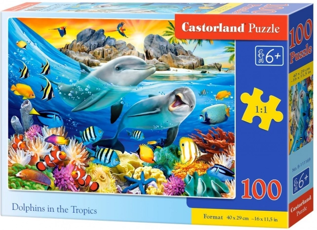 Nyd at lægge et smukt motiv med delfiner i et tropisk paradis. Dette kvalitets-puslespil med 100 brikker byder på både underholdning og læring – det udvikler koncentration, tålmodighed og sans for farver og former. Det færdige puslespil måler 40 × 29 cm og vil glæde både børn og voksne.