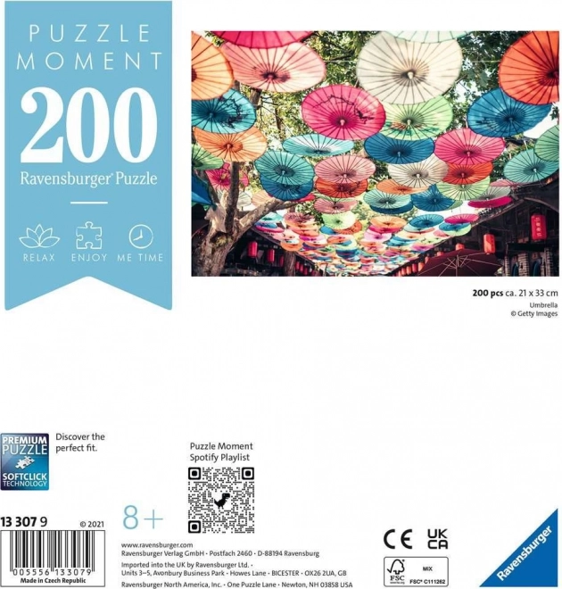 Leder du efter et kort, men intenst øjebliks ro? RAVENSBURGER Moment-puslespillet med motiv af farverige paraplyer tilbyder en ideel hverdagsflugt. Takket være det afbalancerede antal på 200 brikker og den høje kvalitet er lægningen flydende, sjov og en fantastisk aflastning fra dagligdagens stress.