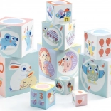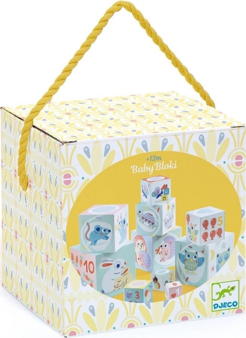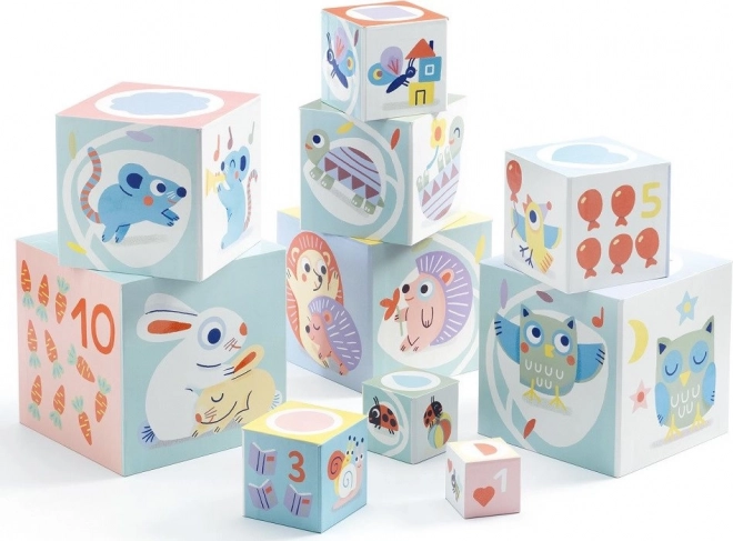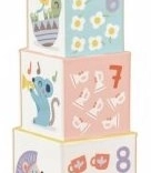 Dette sæt indeholder 10 blokke, der kan stables ovenpå hinanden til en højde på 89 cm. Den største blok har dimensionerne 15 x 15 x 15 cm.