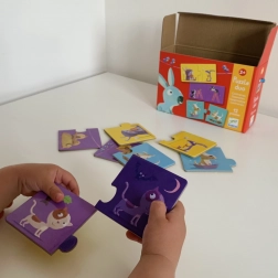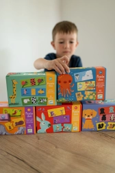Puslespillene omfatter forskellige interaktive og læringsaktiviteter såsom at navngive dyr, imitere deres bevægelser og lyde, hvilket fører til udviklingen af grov motorik. Børn lærer også at sammenligne billeder og finde de korrekte tillægsord.