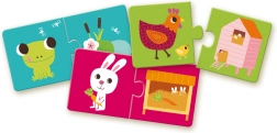 Disse enkle to-delte puslespil er ideelle for børn, der begynder med puslespil. Store og solide brikker med en tykkelse på ca. 3 mm gør det lettere at samle og sikrer lang holdbarhed.