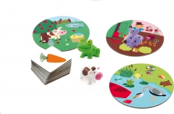 Spillet Djeco Lille association er et ideelt valg som det første brætspil. Børnene matcher dyr med miljøer eller genstande på kortene – for eksempel en kanin til en gulerod, en fisk til en dam eller en mariehøne til en eng. Den enkle idé støtter hurtige beslutninger og udvikler naturligt forståelsen af verden omkring os.