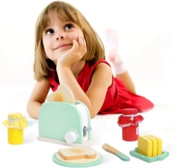 Vi præsenterer et fantastisk træbrødrister-morgenmadssæt, der giver dine børn timevis af kreativ leg. Sættet er designet til at stimulere deres kreativitet og lader dem efterligne tilberedningen af en rigtig morgenmad.