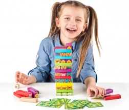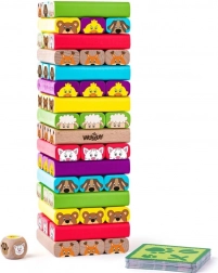 Dette farverige tårn med dyr vil glæde hvert barn med sine strålende farver og legesyge motiver. Det er lavet af kvalitets træ og tilbyder forskellige måder at lege på - fra simpel stabling til strategiske spil med terning og kort. Spillet muliggør udvikling af strategisk tænkning og underholdning for hele familien.