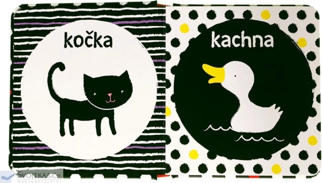 Denne første sort-hvide dyrebog er designet til at stimulere nyfødtes og spædbørns visuelle perception. Den høje kontrast i sort-hvide billeder med diskrete farveaccenter er mere egnet til den tidlige synsudvikling end farvemættede illustrationer. Babyen kan sikkert gribe bogen selv og bladre i den igen og igen.