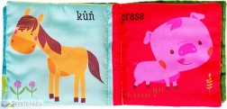 Denne bløde bog er ideel til de allermindste læsere. Lær de populære dyr på gården at kende – får, hest, ko og gris. Illustrationerne er fængende og lette at forstå, så børn nemt kan genkende former og farver.