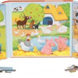 Oplev en smukt illustreret magnetisk puslespilsbog med gårdscener, som indeholder i alt 4 billeder. To af disse billeder er udformet som puslespil, hver med 20 magnetiske brikker, der sidder rigtig godt fast. Bogen er lavet af kraftig pap, hvilket gør den holdbar og praktisk til rejser. Den hjælper med at udvikle børns finmotorik og logiske tænkning.