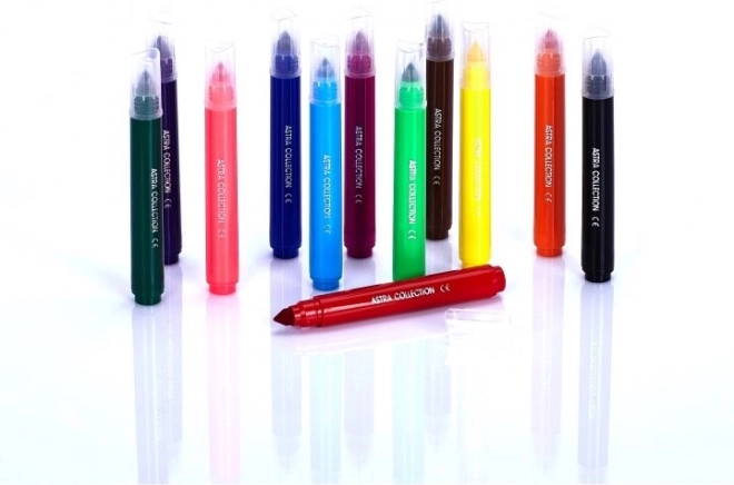 Fixe jumbo ASTRA 12 stk. er det ideelle valg til børn fra 3 år, skolebørn og kreative familier. Den ekstra kraftige krop ligger godt i små hænder, og de mættede farver gør tegning sjovere og mere iøjnefaldende. Sikkerhed og nem vedligeholdelse er i fokus – blækket er sundhedsvenligt og kan vaskes af de fleste tekstiler.