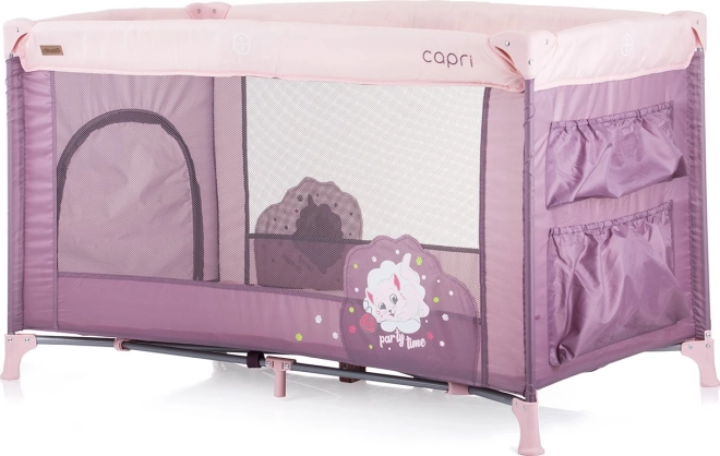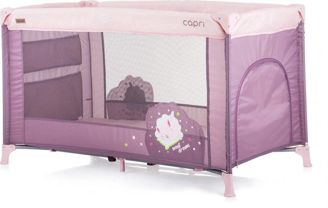 CHIPOLINO Capri rejseseng er designet for barnets komfort og forældrenes nemme håndtering. Med den hurtige foldemekanisme er den klar til brug på få øjeblikke, både hjemme og på ferie. Sideindgangen med lynlås giver større børn mulighed for sikkert at kravle ind og ud selv, og den bløde madras sikrer komfort under hvile.