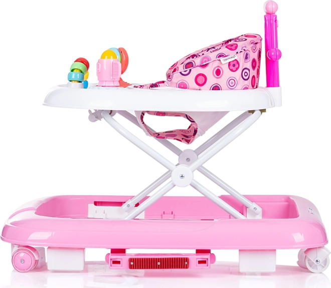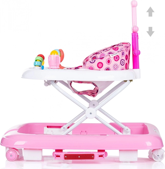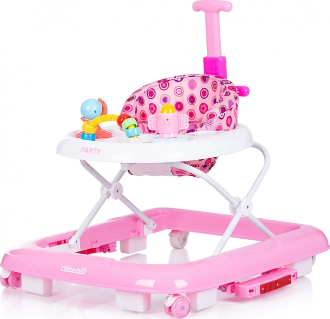 CHIPOLINO Party 4-i-1 gåstol er en fremragende løsning til babyer op til 12 kg, som endnu ikke går selvstændigt, men allerede kan sidde selv. Den kombinerer en stabil konstruktion med bred base og glidende hjul for nem bevægelse i hjemmet. Det overskuelige aktivitetsbord med farver og lyde stimulerer barnets kreativitet og understøtter sanseudviklingen.