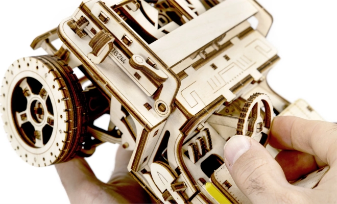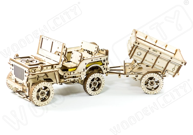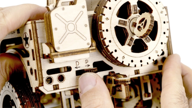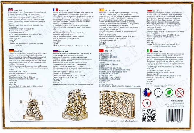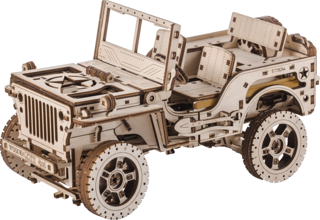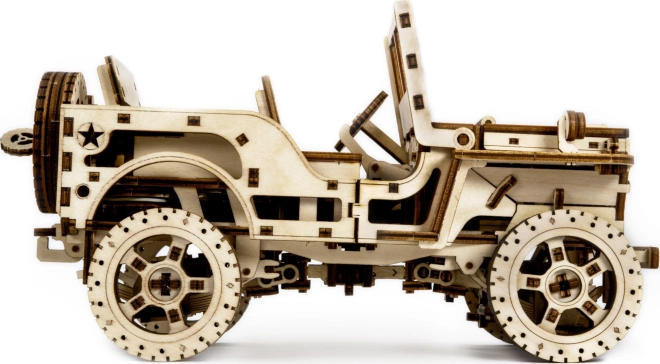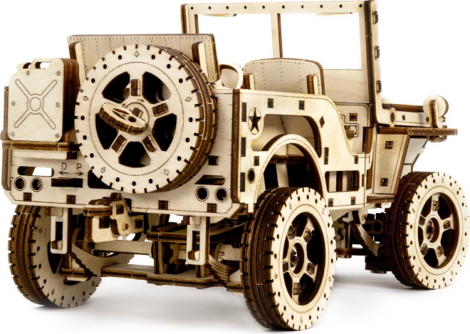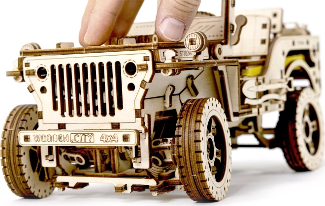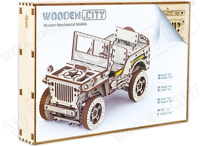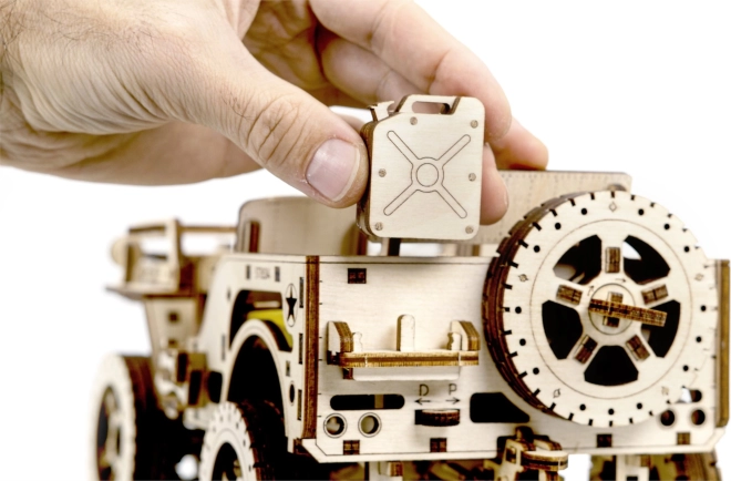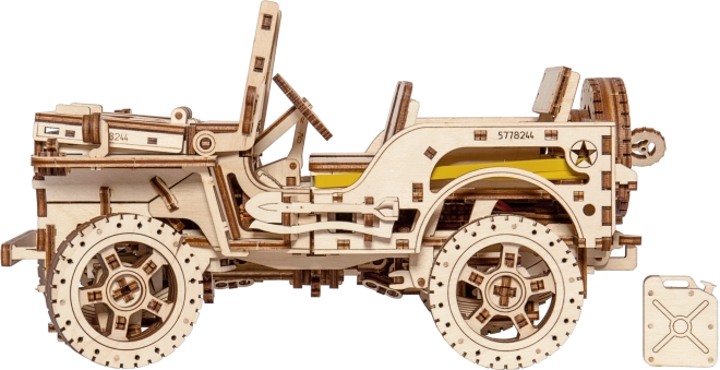Træmodellen af 4x4-jeepen fra WOODEN CITY er en vidunderlig gave til elskere af klassiske køretøjer og modeller. Fremstillet af miljøvenlig birkekrydsfiner tilbyder denne model: