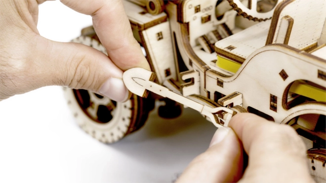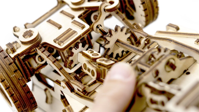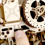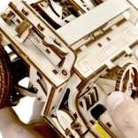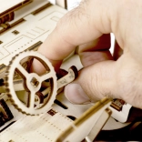 Hver del af modellen, som måler cirka 27,9 x 15,1 x 14,8 cm, er laserskåret for præcis og glat samling. Afslutningsvis anbefales voks for at sikre en jævn gang i tandhjul og aksler. Til samlingen behøves også hobbykniv, saks, sandpapir og stearinlys (udstyr er ikke inkluderet i pakken).