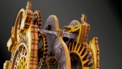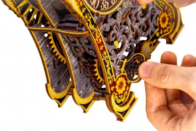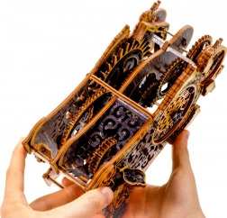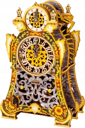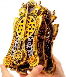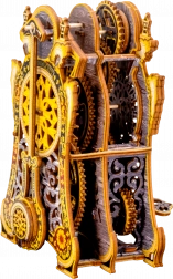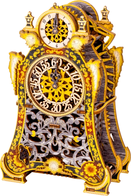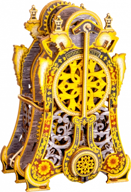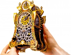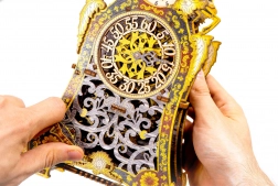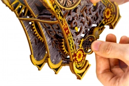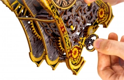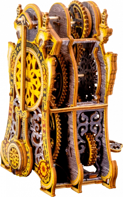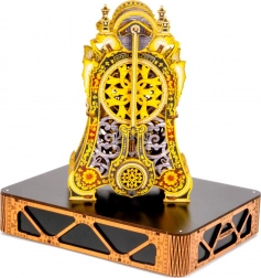Det magiske ur er både fortælling og videnskab i ét. Efter samling vækkes det til live af de roterende tandhjul og pendulets regelmæssige bevægelse. To urskiver – for timer og minutter – lader dig følge tiden og den fascinerende mekanik. Limited edition med fine graveringer og farverigt UV-print skiller sig ud i indretningen og vækker stemningen fra klassiske eventyr.