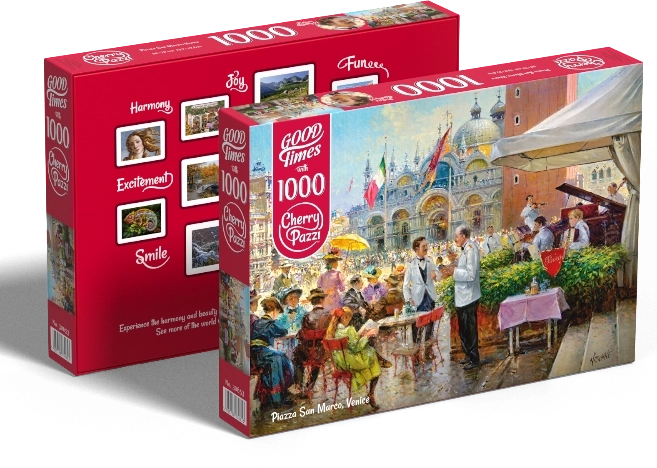 Oplev skønheden i Venedig med puslespillet CHERRY PAZZI: 1000 brikker med motiv af Piazza San Marco. Kvalitetsprint, præcise udskæringer og samlet størrelse ca. 70 × 50 cm for nem lægning og udstilling.