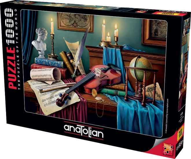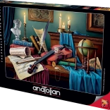 Kast dig over det elegante motiv Violinistens bord og giv dig selv stunder af ro og fordybelse. ANATOLIAN puslespil udmærker sig ved præcis udskæring, kvalitetsprint og mættede farver, som giver motivet en unik atmosfære. Det praktiske stativ gør det nemt at placere æskelåget som forlæg, så du hele tiden har billedet for øje.