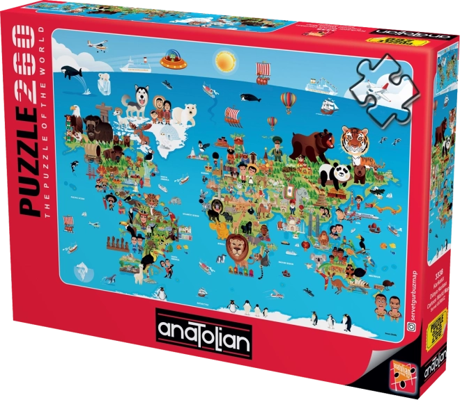 Leder du efter et puslespil, der kombinerer underholdning og læring? Det tegnede verdenskort fra ANATOLIAN byder på charmerende illustrationer af kontinenter, dyr og seværdigheder med engelske betegnelser, så du naturligt kan øve fremmedsprog under samlingen. Med 260 brikker er det ideelt til skolebørn og hyggeligt familiesamvær.