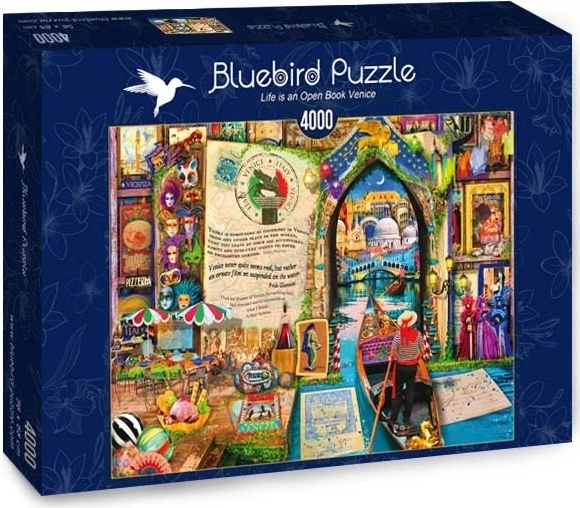 Oplev Venedigs magi på et storslået motiv sammensat af 4000 brikker. Dette premium-puslespil fra BLUEBIRD byder på en detaljeret illustration fra serien “Livet som en åben bog” og danner efter samling et imponerende format på ca. 136 × 96 cm. Ideelt til erfarne puslespilsentusiaster, der søger en udfordring, afslapning og dekoration i ét. Nyd kvalitetsforarbejdning, præcise udskæringer og rige farver til mange timers underholdning.