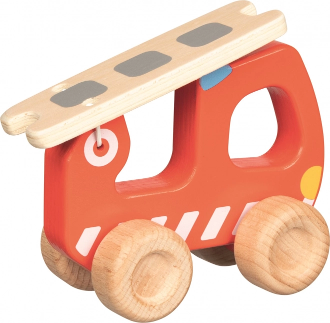 Træ brandbil Goki er ikke kun sjov, men også sikker. Den har en funktionel stige og er designet til små hænder takket være et grebshul. Legetøjet opfylder strenge sikkerhedsstandarder og fremstilles med hensyn til miljøet: