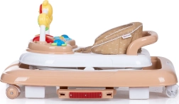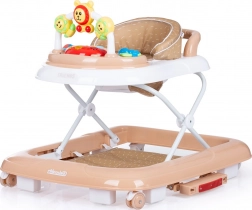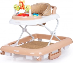 Det interaktive panel med farverigt legetøj og lydmodul understøtter sanseudvikling og finmotorik. Sædet kan justeres i 3 højdeniveauer, forhjulene drejer 360° for nem manøvrering, og hele gåstolen er let at folde og opbevare.