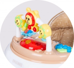 Gåstol 4-i-1 Friends er en praktisk hjælper i udforskningen af verden. Den kombinerer fire funktioner i én og tilpasser sig nemt barnets aktuelle behov – fra et sjovt aktivitetscenter til en stabil støtte ved de første skridt. Takket være den brede base og sikkerhedselementerne er bevægelsen glidende og sikker.