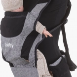 - 3 bæremåder: foran ind mod forælder (fra 4 mdr.), foran udad (fra 4 mdr.), på ryggen ind mod forælder (fra 6 mdr.)