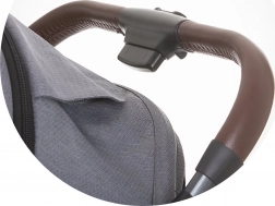 Barnet får høj komfort med justerbar ryg- og benstøtte, forlængelig kaleche med kighul og solskærm samt aftageligt frontbøjle betrukket med økolæder. Sikkerheden understøttes af 5-punktsseler med polstring, bageste led-bremse og sikkerhedsrem på håndtaget. I pakken findes benovertræk og myggenet; den praktiske kurv giver god plads til alt nødvendigt.