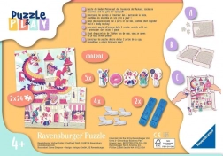 Sættet Ravensburger Puzzle & Play: donutskongeriget kombinerer puslespil og historiefortælling. De to søde motiver danner efter samling scener på ca. 26 × 18 cm. Når begge dele af æsken sættes sammen, skaber I nemt et lille teater, hvor historierne fra donutskongeriget kan udfolde sig.