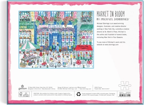 Oplev puslespillet 'Blomstermarked' med 2000 brikker af Michael Storrings. Kvalitetsmæssig, miljøvenlig udførelse og kunstnerisk illustration.