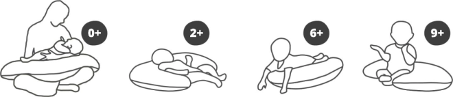 Multifunktionel pude, der er velegnet til støtte under graviditet og ved amning.