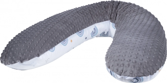 Ammepuden BUBABA Regnbue grå er en alsidig hjælper, designet til forskellige behov under graviditet og amning. Nyd komfort og støtte ved både babymadning og hvile.