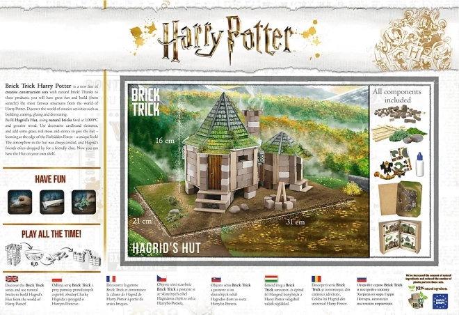 Sættene 'Brick Trick Harry Potter' kan kombineres for at skabe en kompleks verden af magi og trolddom, inklusive det altid populære Hogwarts-slot. Producenten Trefl lægger vægt på miljøhensyn – over 90% af materialerne er af naturlig oprindelse.