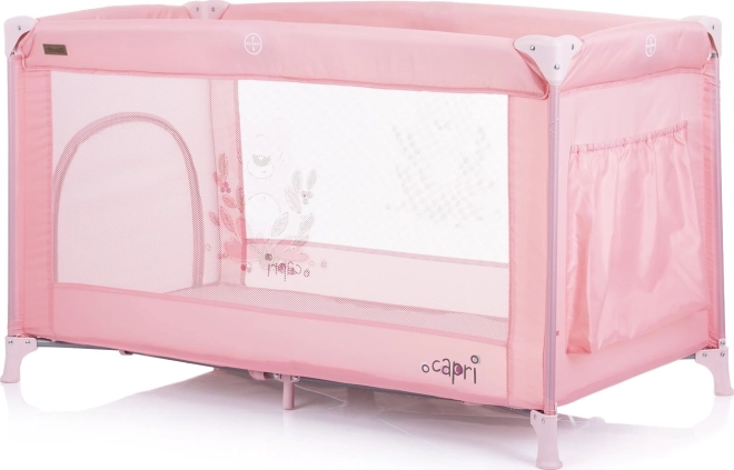 Den praktiske rejseseng Chipolino Capri er ideel til daglig brug og rejser. Den tilbyder hurtig og nem sammenfoldning, sideindgang med lynlås for bekvem adgang, blød madras og to rummelige sidelommer. For barnets sikkerhed har den beskyttede kanter, og for nem transport medfølger en transporttaske. Opfylder standarden EN 716-1.