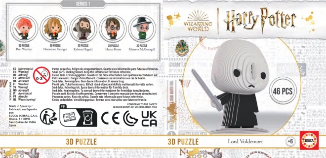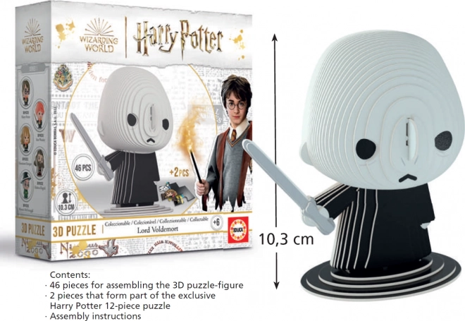 Saml den ikoniske figur fra troldmandsverdenen – 3D-puslespillet Harry Potter: Lord Voldemort med 46 dele. Modellen består af forudstansede kartonlag i fuld farve, som let kan stables oven på hinanden uden brug af lim. Resultatet er en cirka 10 cm høj figur fra en samlerserie, og der medfølger desuden 2 eksklusive brikker til et 12-delt samlerpuslespil fra Harry Potter-universet.