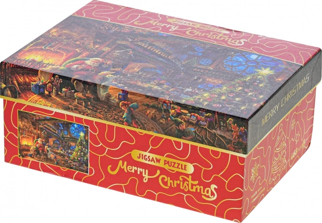 Julepuslespillet Merry Christmas – hos Julemanden hjemme bringer den magiske højtid direkte til dit bord. Takket være de utraditionelle brikkeformer er lægningen sjovt udfordrende og glæder både begyndere og erfarne puslere. Det færdige motiv måler cirka 75 × 50 cm og bliver en smuk dekoration.