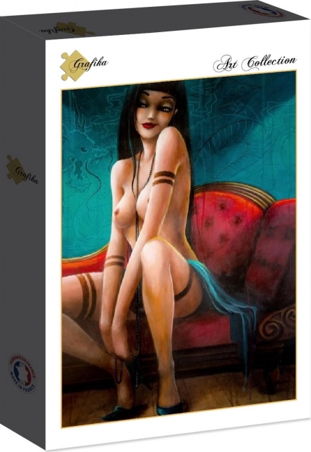 Oplev skønheden og detaljerne i kunstværket med puslespillet 'Miss Dragon' fra mærket Grafika. Dette puslespil på 1000 brikker er en del af samlingen 'Erotik og sanselighed' og er beregnet til voksne puslespilsentusiaster. Med målene 69 x 47,8 cm viser puslespillet et værk af den franske kunstner Misstigri, som er præcist gengivet på kvalitetskarton.